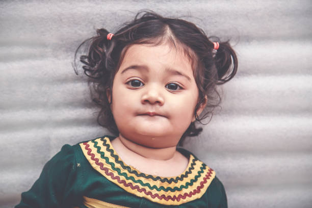 Portrait of Small Cheerful Indian Girl looking directly at camera.