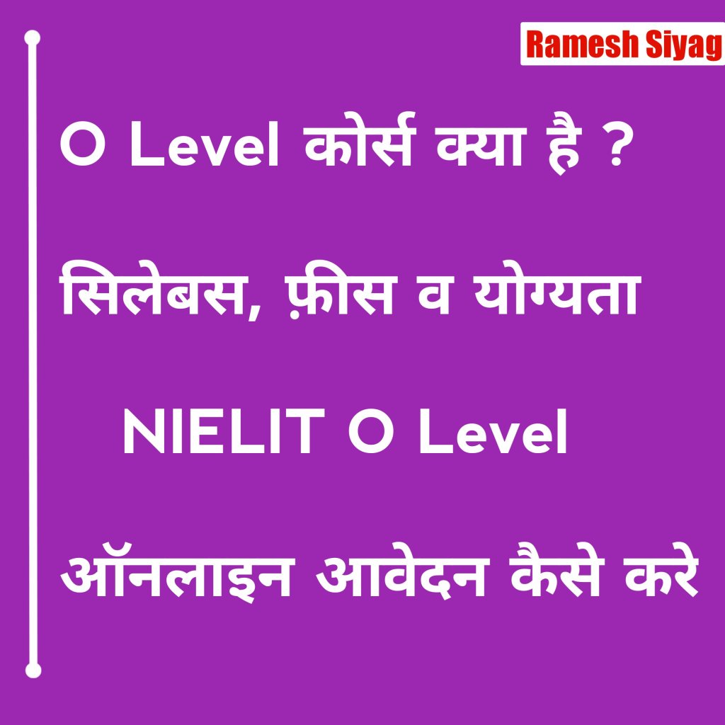 किन्तु बहुत से ऐसे लोग होते है, जिन्हें इस कोर्स के बारे में जानकारी नहीं होती है | यदि आप इस कोर्स के बारे में जानकारी प्राप्त करना चाहते है, तो इस पोस्ट में आपको O Level कोर्स क्या है, और O Level का सिलेबस, फ़ीस व योग्यता क्या है, तथा NIELIT O Level ऑनलाइन आवेदन कैसे करे इसके बारे में जानकारी दी जा रही है |